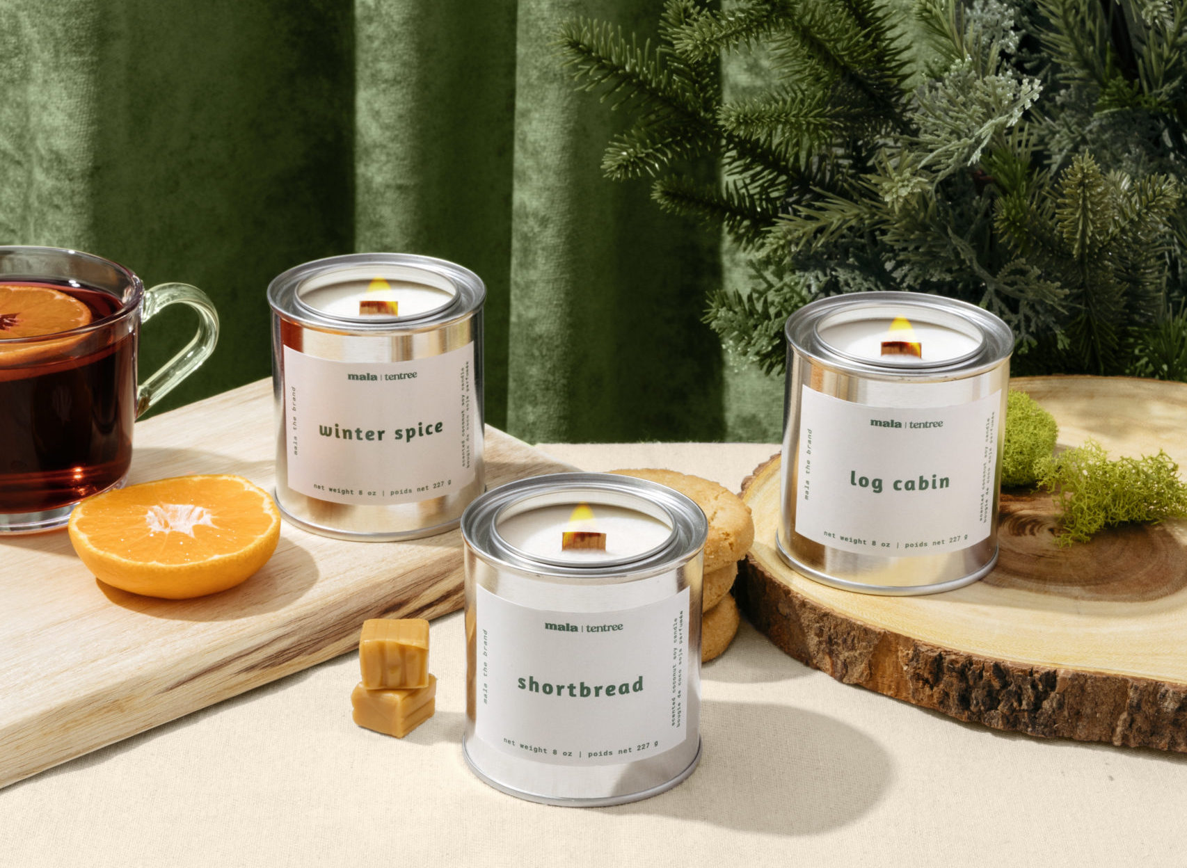 - Soy wax — Soy is natural, vegan, renewable and biodegradable. We suggest doing a little additional research when considering soy-based candles because there are some bigger concerns around the soybean industry in regards to deforestation and pesticide use. Look for sustainable brands like Mala that protect the integrity of the land they harvest from by prioritizing small-scale growth and harvesting methods.